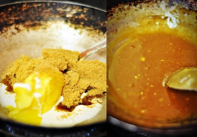 tutup api dan masukkan butter dan gula.. kacau sehingga gula larut... sejukkan lebih kurang 10 minit dan campurkan baking soda...